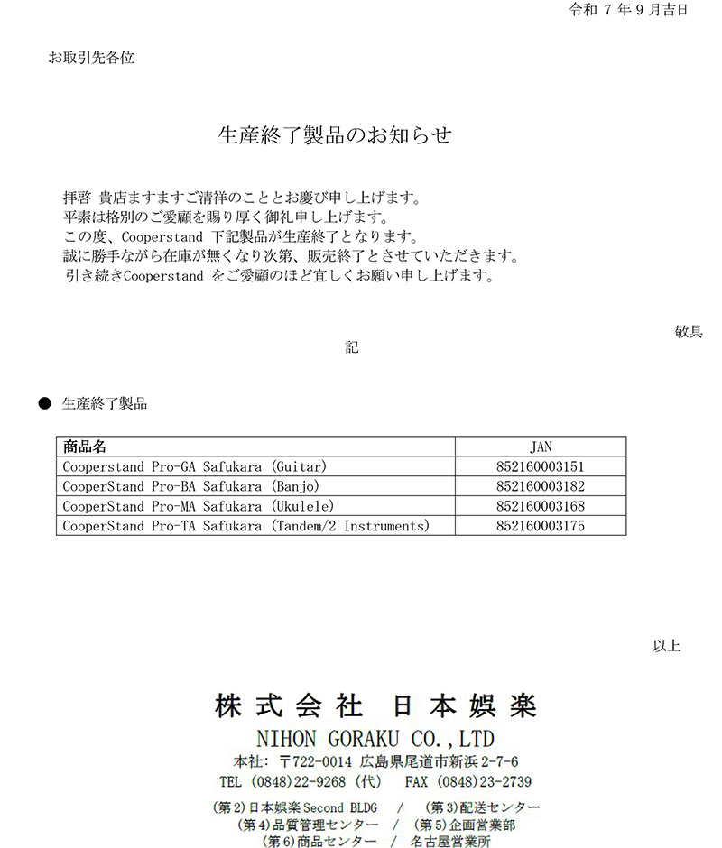 Cooperstand 廃盤のお知らせ。