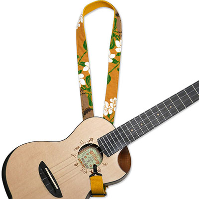 本場ハワイの生地を使用しロサンゼルスの工場で職人の手により丹念に作られたウクレレストラップは、アロハシャツやハワイアン雑貨の様な常夏をイメージするデザインだけでなく、縫製・使用パーツにこだわりスムーズな使用感を実現しています。