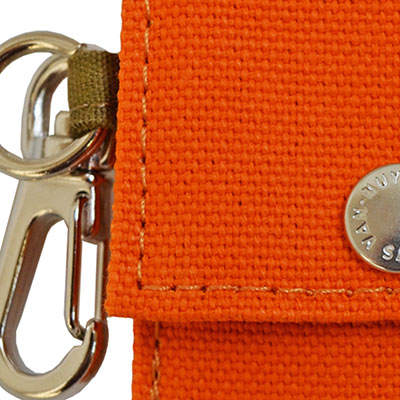 キーホルダーにもなる、丈夫な帆布製のピックケースです。ピック以外にもコインや予備のキー、メモなど、ちょっとしたモノを入れて携帯するのに便利な手のひらサイズです。帆布は、綿100%の自然素材で、特に強度や耐久性、通気性に優れています。使い込むほどに味わい深くなっていくという、化学繊維にはない独特の性質を持っています。