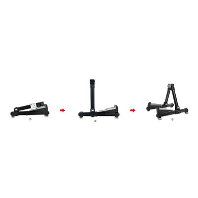 うしろ足台部分(B) も伸縮式で、いままでのコンパクトギタースタンドの欠点であった安定性を改善したモデルになります。