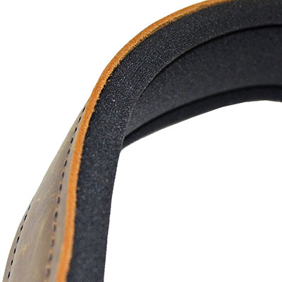 このストラップの肩パッドには、抗菌性の低反発素材が使用されています。「弾性」を抑え「粘性」を上げたフォームで、衝撃吸収性フォームの特性も有しております。 このストラップは、目立ちにくい薄型設計で上品な外観なので、演奏者のスタイルに合わせやすいです。 パッド部分の表面には、ナイロンウェビングとレザーの2種類があり、レザーは高級感のあるオイル仕上げのトップグレードの革を使用しております。 負荷がかかる部分をパッドが包み込み、優しく衝撃を保護します。肩に合わせて形が変わるため、快適なフィット感が得られ、重量があるバンジョーにも軽快な着心地が実感できます。 また、パッドは汗などの湿気を吸い取って外に逃がすので、汗による不快感を軽減します。