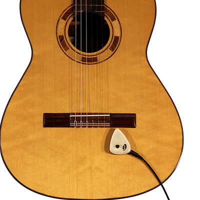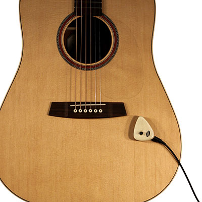 シンプルで綺麗な曲線のデザインは、楽器本来の温かみのある木製素材のルックスを損なうことなく最小限の取り付け加工で、プレイヤーの表現するサウンドをクリアに出力。ギターやウクレレなどの弦楽器からパーカッションなどの打楽器まで、楽器本体の振動を音声信号に変換するパッシブピックアップです。
