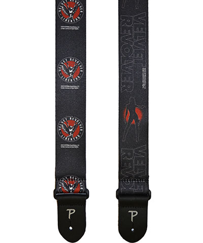 グラミー賞、マルチプラチナムに輝いた、ギタリストSLASHの率いるヘヴィーロックのスーパーグループ「ベルベットリボルバー」のデザインストラップ。