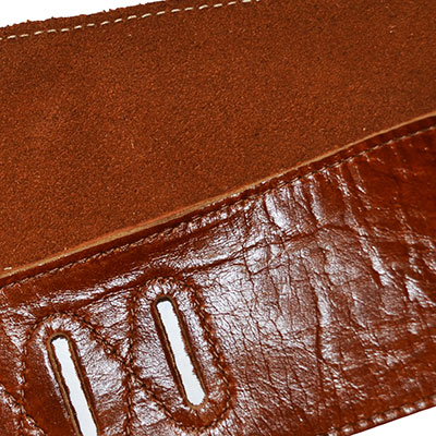 皮の持つ独特の風合いがオシャレなアイテム。服装や楽器にも合わせやすいカラーです。