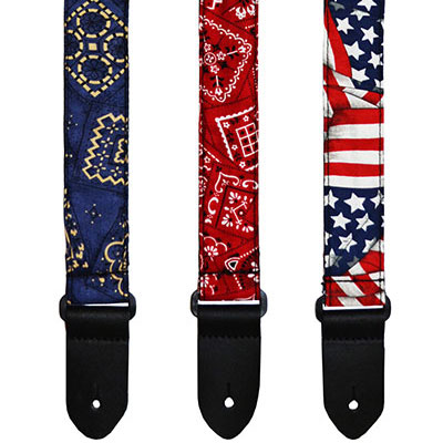 バンダナ柄とファブリック柄デザインのウクレレストラップ。
