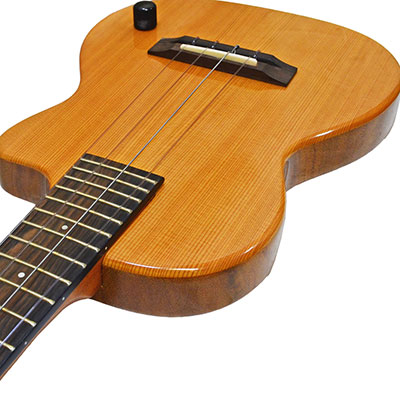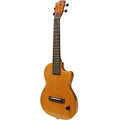 Thinbody Electricはテナーサイズモデルで姉妹ブランドKo'olauのCEモデルをそのまま継承したカッタウェイ・デザインを採用しています。セミホロー構造で、アコースティックなサウンドが特徴です。ボディにはサウンドホールがなく、ハウリングも起こりにくい構造ですのでバンド・アンサンブルでも重宝します。