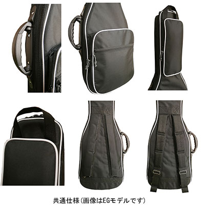 ハードケースの様にしっかりした外装を保ちつつ軽量ライトケースを実現。外からのダメージに強い20mm 厚のフォーム、ケース底面は滑り止めラバーで補強。大型Swingハンドルは移動時のストレスを軽減します。収納式のショルダーベルトは、使用しない場合に収納可能。内装にはネック枕を備え、痛みやすいブリッジ・ヘッド部分には裏地を補強。アクセサリー類の持ち運びに便利な充実の収納スペース。