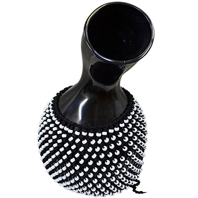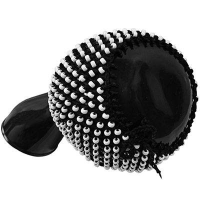 Fiberglass Shekere, Black with White Beads