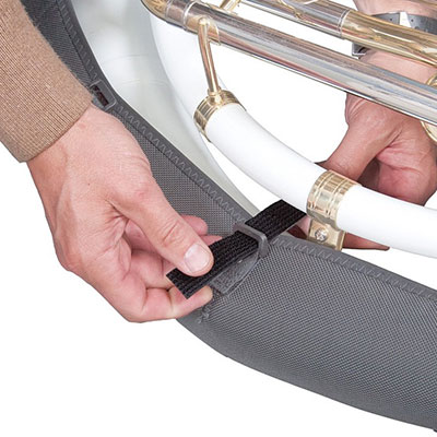 この商品は、通常のナイロンの5倍の強度があると言われているバリスティックナイロンを使用して作られています。強度、防水性共に強力な軍事用に開発されたタフな生地です。長時間のリハーサルや演奏で、待機時の床置きでも全く心配のいらない充分なクッションを装備しており、ベル管のへこみや擦り傷を防止する有効なパッドです。音程や音色に影響が出てしまうこのポジションのダメージを最大限防止するスーザフォン必須アイテムと言えるでしょう。マジックテープ式で、簡単に素早く取り付ける事が可能です。保管や輸送中も、大切な楽器を守ります。使用しないときは折り畳んでコンパクトに収納できます。