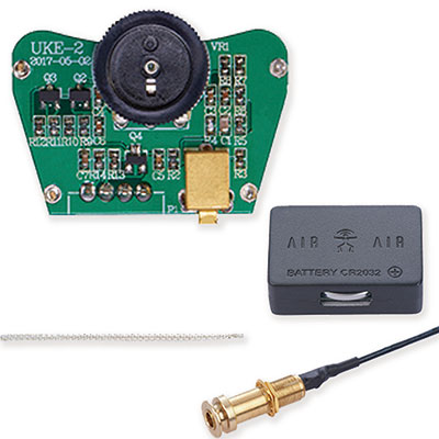 ANUENUE が独自に設計した「Mini U Pickup」。ディスクリートで構成されたクラスA 回路は、ウクレレ本来の温かみのあるクリアなサウンドを伝えるだけでなく、低ノイズ、低電力を実現ボタン電池CR2032 を採用しボディ振動への影響を削減。シンプルで直観的な操作が可能な1ヴォリューム仕様。