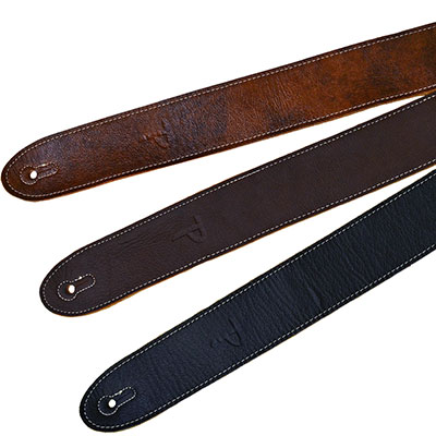 柔らかく手触りの良いレザーストラップ。9色のラインナップ。皮の持つ独特の風合いがオシャレなアイテム。服装や楽器にも合わせやすいカラーです。ストラップの長さは2.5cm間隔で調整が可能です。