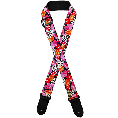 1.5" FABRIC UKULELE STRAP - PINK LEAVES