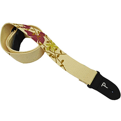 厚手のコットン素材のギターストラップ。手書き風イラストのプリントがオシャレなアイテム。ストラップの長さはスタイルに合わせて簡単に調整できます。
