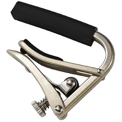 トップブランドとして培ったノウハウにより、確立された独自の取付レバーデザインは、調整スクリューにより楽器のネックに合わせてワンタッチでスムーズな取り付けが可能。DELUXEシリーズに採用されるレバー内のローラーパーツによりスムーズな動作と、プレイヤーの指先と同様の最適な力を弦へと伝えます。音響特性の良いブラス素材に、サテン仕上げで手触りの良いブラッシュドニッケル仕上げです。アコースティックギターなどの指板が緩やかな湾曲(アール)の有るギター向け。