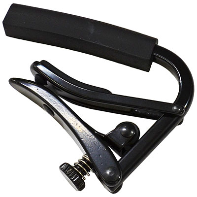 トップブランドとして培ったノウハウにより、確立された独自の取付レバーデザインは、調整スクリューにより楽器のネックに合わせてワンタッチでスムーズな取り付けが可能。DELUXEシリーズに採用されるレバー内のローラーパーツによりスムーズな動作と、プレイヤーの指先と同様の最適な力を弦へと伝えます。音響特性の良いブラス素材に、ブラッククロームメッキで仕上げられブラック仕上げのギターや、ブラックのハードウェアとの相性は抜群です。エレキギターなどの指板の湾曲(アール)がきつめのギター向け。