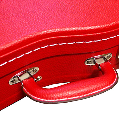 スタンダードな木製ハードケース。外装にはレザーを使用しポップでお洒落なホワイトステッチラインとクロームハードウェアで仕上げたスタンダードなハードケースです。ソフトな肌触りで厚みのある内装ボアは楽器をやさしく保護。蓋付の収納スペースはアクセサリー類の持ち運びに便利です。