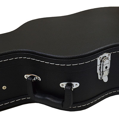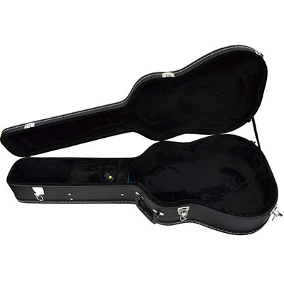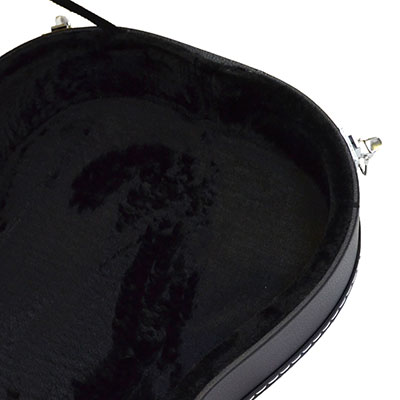 スタンダードな木製ハードケース。外装にレザーを使用しクロームハードウェアで仕上げたスタンダードなハードケースです。ソフトな肌触りで厚みのある内装ボアは楽器をやさしく保護。蓋付の収納スペースはアクセサリー類の持ち運びに便利です。