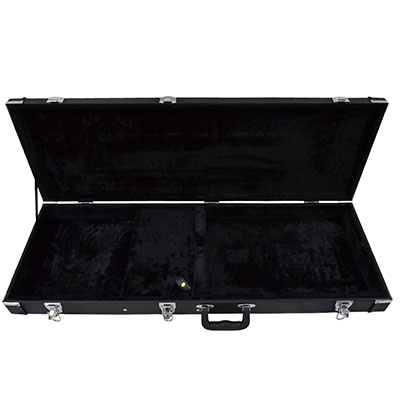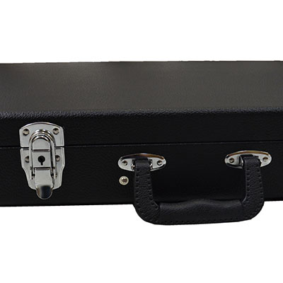 スタンダードな木製ハードケース。外装にレザーを使用しクロームハードウェアで仕上げたスタンダードなハードケースです。ソフトな肌触りで厚みのある内装ボアは楽器をやさしく保護。蓋付の収納スペースはアクセサリー類の持ち運びに便利です。