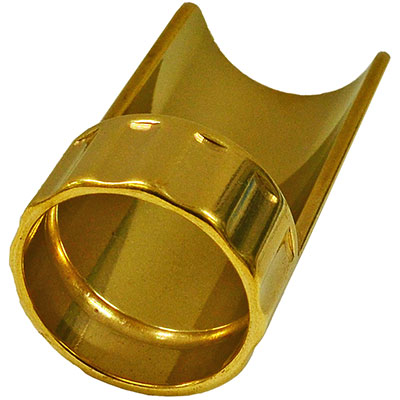 「SHUBB AXYS」の特徴は2つの分離したパーツより構成され、スライド奏法とフィンガリングを両立することができるアイデアの詰まったスライドバーです。本体バー部分は音響特性に優れたブラス製で、通常の円柱型を大胆にカットした形状。プレイヤーの指へ接するリング部分は、本体より独立しており、バー部分を自由に回転させることができます。スライドプレイはブラスのバー部分を使用し、フィンガリングを行う演奏時は指へ取り付けたまま反転させることで、カットされたバー部分によって指が自由に動かせ、フィンガリングが可能となります。摩擦の少ないスムーズな動作を可能にしたデルリン性のリング部分は、プレイヤーの指に合わせて付属の4サイズからお選びいただけます。