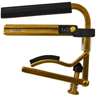 スライド奏法を目的とし弦高を高くセットアップされたリゾネーターギターや、ラップスチールギター専用のカポ「C6b」。弦を押さえ込む専用のゴム製スリーブや、弦と指板の間に位置するパーツを調整することにより、弦高やネックグリップに合わせて取り付けが可能です。他のモデルと同様SHUBB社の安定したレバー取り付け機能を採用し、確実な動作を実現しています。