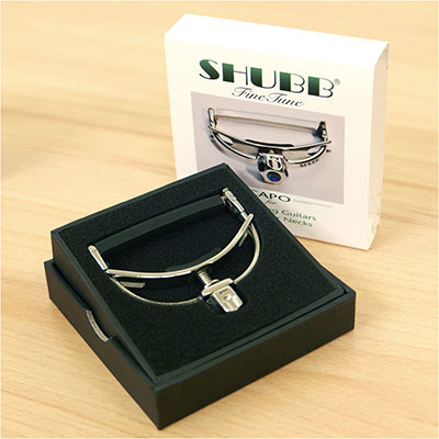 耐久性・軽量性の優れたステンレススチール素材を精密に加工し、調整のスクリュー部のグラツキを限りなく無くすことで安定した動作を実現。背面より垂直にスクリューを締めこむことで、各弦を均一なバランスで押さえ込むことができます。ワンタッチで開閉可能なラッチスタイルのバーはスムーズな取り付けを可能にし、未使用時にはナット部分に取り付けることでプレイの邪魔になりません。調整ダイアル部分のアバロンインレイがアクセントの美しい仕上げです。