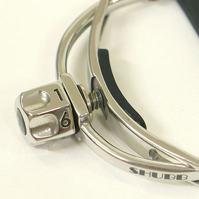 耐久性・軽量性の優れたステンレススチール素材を精密に加工し、調整のスクリュー部のグラツキを限りなく無くすことで安定した動作を実現。背面より垂直にスクリューを締めこむことで、各弦を均一なバランスで押さえ込むことができます。ワンタッチで開閉可能なラッチスタイルのバーはスムーズな取り付けを可能にし、未使用時にはナット部分に取り付けることでプレイの邪魔になりません。調整ダイアル部分のアバロンインレイがアクセントの美しい仕上げです。