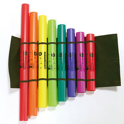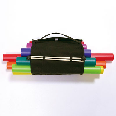 パイプを並べて木琴のように演奏することができるキャリーバッグ。マレット・ソングブックを収納可能で、丸めて持ち運びができます。