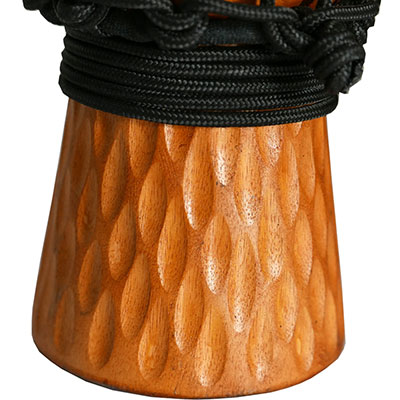 ウッドボディに手作業で仕上げた可愛らしさのあるデザインと作りになっています。ゴートスキンヘッドとロープチューンの本格的な仕様で、小型でもしっかりとしたサウンドを奏でます。手の小さい方やお子様にも楽しんでいただけます。