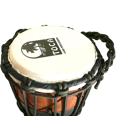 ウッドボディに手作業で仕上げた可愛らしさのあるデザインと作りになっています。ゴートスキンヘッドとロープチューンの本格的な仕様で、小型でもしっかりとしたサウンドを奏でます。手の小さい方やお子様にも楽しんでいただけます。