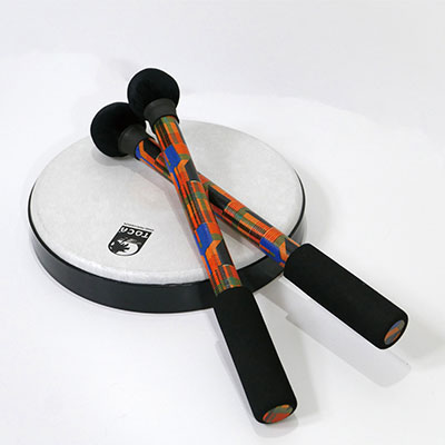 Tom-Tom Drums。耐久性・軽量化に優れたPVC 合成樹脂のボディ。音程の安定したシンセティックヘッドは取り外し、単体でミュートの効いたフレームドラムのように演奏が可能です。12"、14"、16" の異なるサイズはサウンドのバリエーションだけで無く、ヘッドを取り外し3 類を重ねて省スペースで収納することが可能です。誰にでも楽しめて、学校などのグループ演奏に最適です。2 本1 組の専用マレット付属。