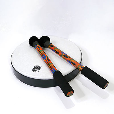 Tom-Tom Drums。耐久性・軽量化に優れたPVC 合成樹脂のボディ。音程の安定したシンセティックヘッドは取り外し、単体でミュートの効いたフレームドラムのように演奏が可能です。12"、14"、16" の異なるサイズはサウンドのバリエーションだけで無く、ヘッドを取り外し3 類を重ねて省スペースで収納することが可能です。誰にでも楽しめて、学校などのグループ演奏に最適です。2 本1 組の専用マレット付属。