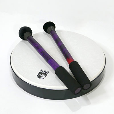 Tom-Tom Drums。耐久性・軽量化に優れたPVC 合成樹脂のボディ。音程の安定したシンセティックヘッドは取り外し、単体でミュートの効いたフレームドラムのように演奏が可能です。12"、14"、16" の異なるサイズはサウンドのバリエーションだけで無く、ヘッドを取り外し3 類を重ねて省スペースで収納することが可能です。誰にでも楽しめて、学校などのグループ演奏に最適です。2 本1 組の専用マレット付属。