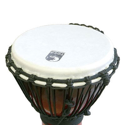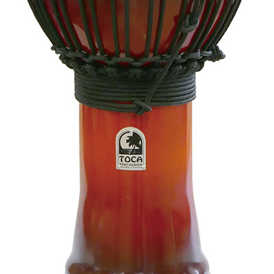 フリースタイル・ジャンベII はPVC樹脂とシンセティックヘッドを組み合わせたモダンな仕様。アクティブなパフォーマンスに最適な軽量性と強度を備えたPVC樹脂ボディに ピッチの安定したシンセティックヘッドの組み合わせで、クリアな音質と演奏性をキープします。チューニングは伝統的なロープタイプです。新しく「サンセット」が仲間入りです。