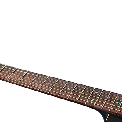 発売して間もなくMini Guitar の代表格のモデルまで登りつめたBird Guitar。Lumiblack Bird は個性が際立つミディアムサイズのボディにマットブラックフィニッシュ。Bird Guitar の独自デザインが可能にするクリアな音質及び十分な音量と、ソリッド・シトカ・スプルース・トップならではの輪郭がはっきりとした上品できらびやかなアコースティックサウンドを実現。インレイの素は"glow in dark" という暗所で光る蓄光素材で、ブラックフィニッシュのアクセントとなり暗いステージでもプレイヤーをサポートします。