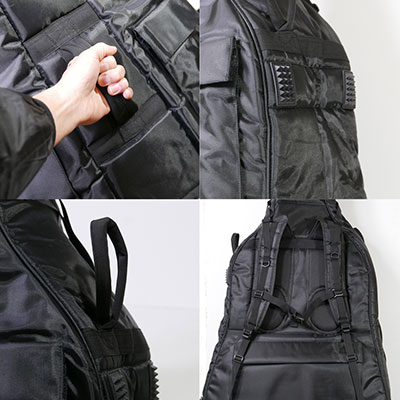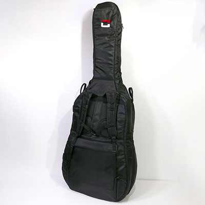 耐久性の高いポリエステル素材の生地に、20mmのクッションパッドを使用した外装。楽器にやさしい柔らかな裏地。スムーズな動作で信頼性の高いYKKファスナーを使用。表面に弓とアクセサリーを収納できる3箇所のポケット。裏面には楽譜を収納するのに最適なポケット。リュックタイプで使用可能なストラップは幅広い調整が可能で、長時間の移動でも蒸れの少ない通気性の高いパッド加工。