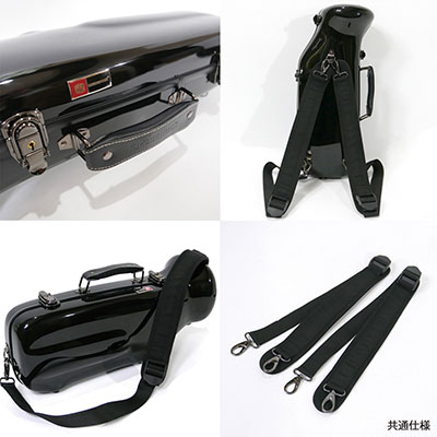 高純度のファイバーグラスを使用し、耐久性・弾力性に優れたケース。内装は高密度のクッションパッドを採用し楽器の振動を防止。マウスピースの収納スペースや、便利な蓋付の小物収納スペース。楽器のシェイプに合わせたスタイリッシュでシンプルな形状の外装。移動時にプレイヤーをサポートするクッション性の高いショルダーストラップが付属。リュックスタイル、ショルダースタイルに対応した2WAY仕様。
