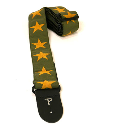 2" GRN/GOLD STARS JACQUARD GUITAR STRAP