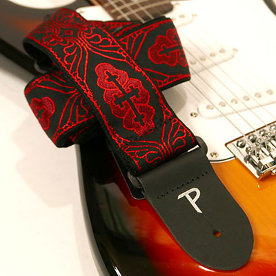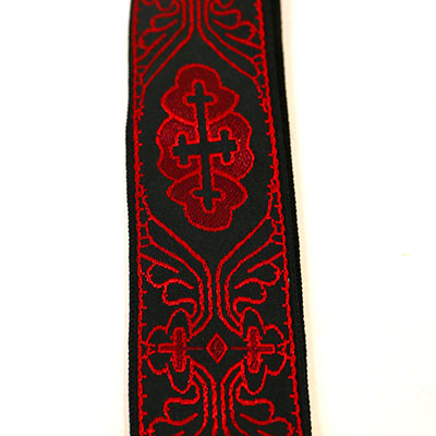 2" BLK/RED CROSS JACQUARD GUITAR STRAP