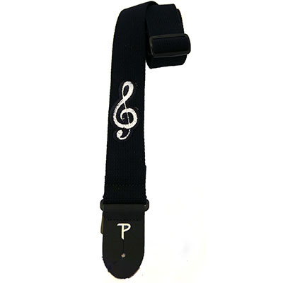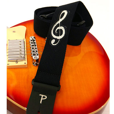 黒のコットン生地に刺繍のワンポイントデザインが入り、シンプルだけど存在感のあるストラップとなっています。
