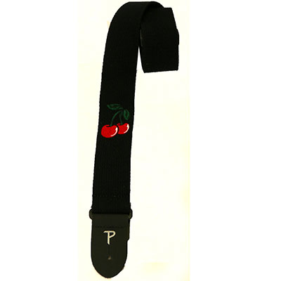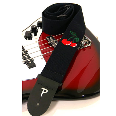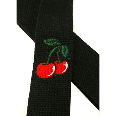 黒のコットン生地に刺繍のワンポイントデザインが入り、シンプルだけど存在感のあるストラップとなっています。