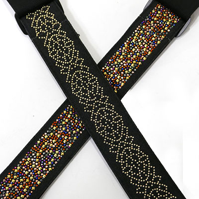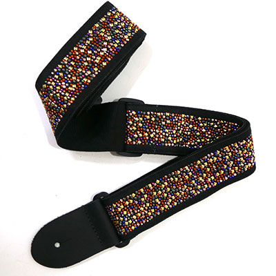 ラインストーンを散りばめたJacquard ストラップ。鮮やかなラインストーンと特徴的なジャカードの紋織物の組み合わせとなっています。煌びやかなストラップが楽器をゴージャスに際立たせます。