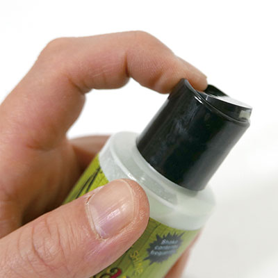 ボトルをよく振った後、クロスへ適量を取り汚れた部分を軽くこすります。一度乾かし綺麗なクロスで拭き上げていきます。