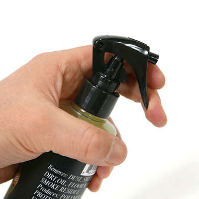 よく振った後に柔らかなクロスに吹きかけ、汚れている部分を拭き上げる、または汚れている個所へ少量スプレーして拭き上げてください。