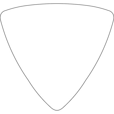 もんげー!これはボクが使っているおにぎり型じゃないですか!!ベースピックだと思われがちですが、ギターにも使えますよ。なにしろ使える場所が3箇所あって、それの裏と表で合計6回も使えるんです!実に経済的です!(本当にボクはそういった経済的理由でこの形のピックを使い始め、そのまま定着してしまいましたw)デザインはデザイナーさんによるものですが、文言や元のデザインはボクが考えたんですよ!色も硬さもティアドロップと同じラインナップをご用意いたしました!