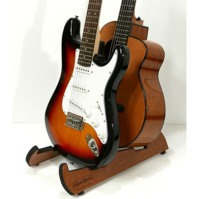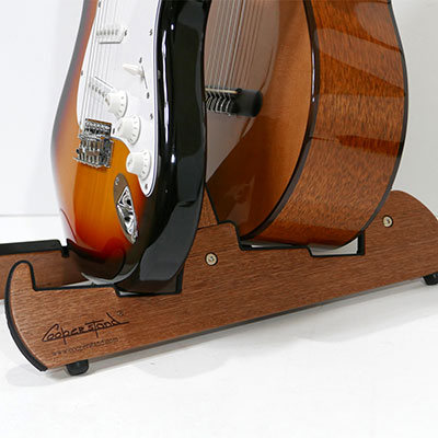 2 本のギターが置けるPro-Tandem。ギターを複数お持ちの方は、二人乗りをイメージしたスタンドに一緒にたてかけられます。種類の違う楽器にも対応出来ますので、ギターからバイオリン・マンドリンなど幅広くご使用いただけます。組み立ても簡単で、小スペースで場所をとらず、家や展示会など色んな場面でご利用出来ます!便利なポーチ付き!