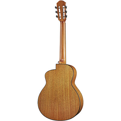 斬新なルックスとスケール24"( 約610mm) の小ぶりなボディ構造で注目を集め続けるBirdGuitar。伝統的なスロテッドヘッドデザインとボディトップにセダー材を採用した、クラシックギターの特徴を盛り込んだヴィンテージライクな仕上げの「aNN-MV114」。セダー材は柔らかな木材で、鳴りが良く、甘く、暖かなサウンドを奏でます。サイドバック材は厳選したアフリカンマホガニーを採用し、ミドルレンジに粘りの有る音色をプラス。小ぶりなボディサイズでバランスの取れた音色はフィンガースタイルの演奏にマッチします。演奏性にかかわりの深い指板には、言わずと知れたローズウッドを採用。合わせてヘッドトップ突き板、ボディ各所のバインディングなどの装飾部分にローズウッドを使用し、飾り気の無い引き締まった印象を与えています。少し大きめのオーバルデザインのブリッジは、弦振動を確実にボディへと伝達し、ダイナミックなサウンドを生み出します。塗装をセミグロス加工で仕上げており、プレイヤーに伝わる質感を柔らかくするだけでなく、落ち着いた印象のルックスになっております。