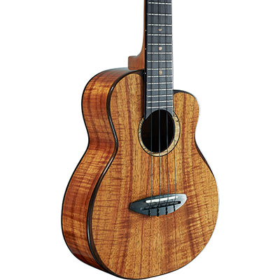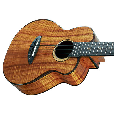 Hawaiian Koa - Bird Ukulele 3Kは3AAAグレードのハワイアンコアを使用したオールソリッドモデル。クリアなサウンドを生み出す特徴的なボディ構造は、多くのプレイヤーを魅了します。ハワイで育った贅沢な3AAA コア材は、製造に至るまで十分なシーズニングを行い管理され、暖かな中音域と心地の良い倍音成分を生み出しクリアなサウンドを奏でます。サウンドはもちろん、ローズウッドバインディングやスポルテッド・メイプルのロゼッタのこだわりつくした装飾は、美しい木目が特徴のコア材との組み合わせで個性の際立つ仕上げとなっています。