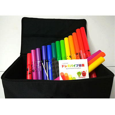 大量のドレミパイプが持ち運び出来るキャリーバック。