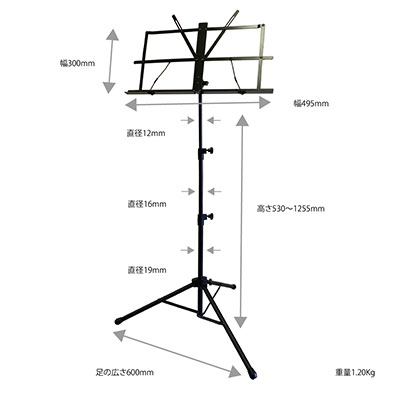 一般的なタイプの組み立て式譜面台。安定性・シンプル・コストパフォーマンスと3拍子そろいの譜面台になります。