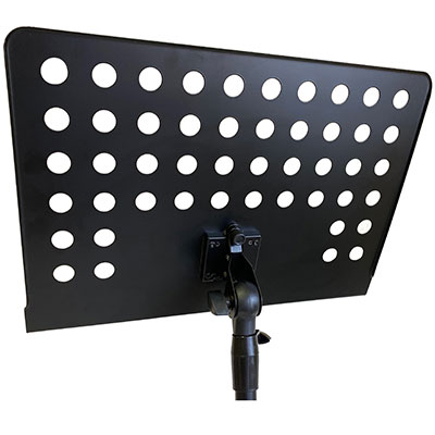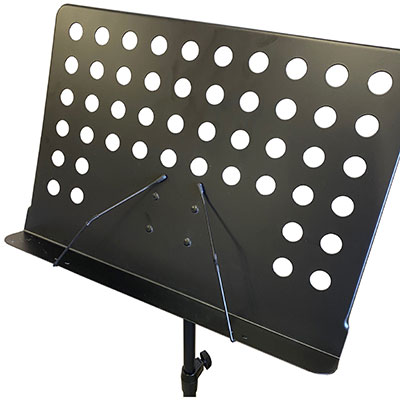 オーケストラタイプの譜面台。安定性と強度に優れており、譜面部は取り外し可能な為、足部分と分離できるこが可能で運搬及び収納に便利になります。譜面押さえはバネ式になり、しっかりと固定ができます。